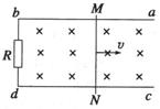 如图所示,两根相距为l的平行直导轨ab、cd.b、d间连有一固定电阻R,导线电阻可忽略不计.MN为放在ab和cd上的一导体杆,与ab垂直,其电阻也为R.整个装置处于匀强磁场中,磁感应强度的大小为B,磁场方向垂直于导轨所在平面(指向图中纸面内).现对MN施力使它沿导轨方向以速度.(如图)做匀速运动.令U表示MN两端电压的大小,则 ( )