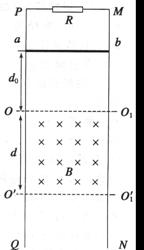 6.如图所示,竖直放置的光滑平行金属导轨MN、PQ相距L,在M点和P点间接一个阻值为R的电阻,在两导轨间OO1O1'O'矩形区域内有垂直导轨平面向里、宽为d的匀强磁场,磁感应强度为B.一质量为m,电阻为r的导体棒ab垂直搁在导轨上,与磁场上边边界相距d0.现使ab棒由静止开始释放,棒ab在离开磁场前已经做匀速直线运动(棒ab与导轨始终保持良好的电接触且下落过程中始终保持水平,导轨电阻不计).求: