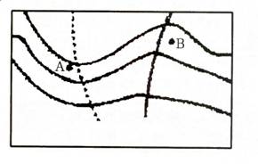 右下图为北半球某区域的等值线图,数值由南向北逐渐减小。读图分析回答38-40题: