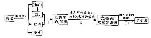 (4)步骤Ⅱ用SO2水溶液吸收Br2,吸收率可达95%,有关反应的离子方程式为_________________________,由此反应可知,除环境保护外,在工业生产中应解决的主要问题是____________________。