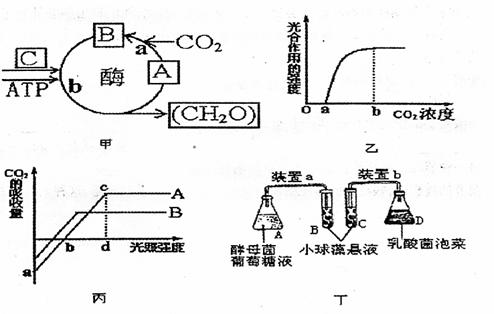 A.图甲是生活在适宜环境中的C3植物光合作用部分过程图解,A、B、C表示化合物,a、b表示生理过程,则C能为b过程提供还原剂,但不能提供能量