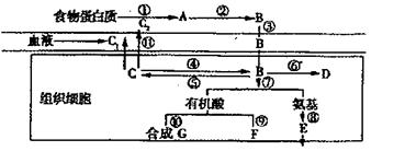 26.下图为哺乳动物体内蛋白质代谢示意图,图中数字代表生理过程,字母代表物质名称。据图回答正确的是 ( )