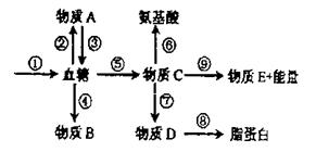 28.下图表示人体内的部分物质代谢(其中物质E代表一种或两种物质)。下列有关叙述,正确的是 ( )