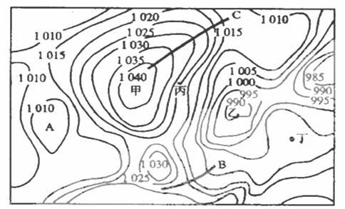 (4)B、C两线,实际存在锋面的是 ,说明判断的理由 。(4分)