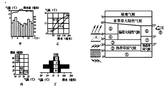 (1)左图中气候资料与右图中序号相对应。