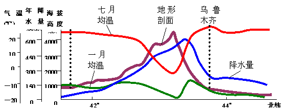 26.下图表示的是地形剖面图,以及对应的气候资料。读图回答(10分)