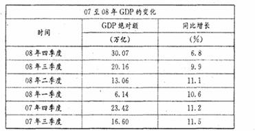 材料二:2007年第三季度一2008年第四季度我国GDP的变化情况图