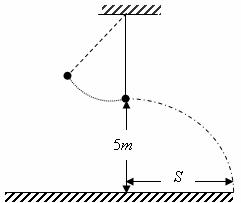 (2)线被拉断后,球落于悬点正下方5m的水平面上的位置。