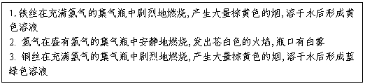 氧气、氢气、铁、盐酸等物质的颜色、状态 |