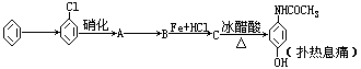 对乙酰胺基酚又称扑热息痛,为白色晶体,是一种优良的解热镇痛药,其毒性较菲那西汀,阿司匹林低。扑热息痛的生产流程为: