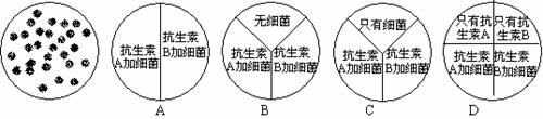 15.若将某种细菌置于适宜的培养基上,它会繁殖并形成细胞群(如下图)。有什么适当的实验可以用来检验两种抗生素的杀菌效果?