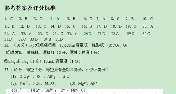 36.(10分)I.实验室提供下列仪器(用品)和药品: