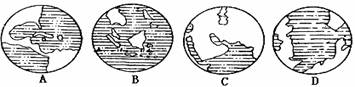 16.若把四图反映地区用同一比例尺绘图,则图幅面积从大到小排列正确的是 ( )