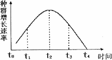 [解析]此曲线的纵坐标为“种群增长率”,其种群为S型增长,t2时刻对应的种群数量为K/2,故C错误,正确。t3时刻年龄组成应为增长型,A错误;t4时刻种群数量达到K值,并非在新环境中逐渐消失。