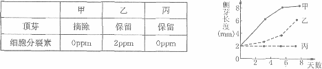 15.将甲、乙、丙三株大小相近的同种植物,分别进行如下表的处理,实验结果如图所示。根据图表判断,下列叙述正确的是