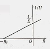 因此在1/U-R坐标系中,当R取不同阻值时,总有不同的1/U与之对应。并且这是一条过(0,1/E)的倾斜直线,如图所示 (当R→0 时,1/U=1/E)。