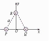 12.如图所示,三根通电长直导线P、Q、R互相平行,垂直纸面放置,其间距均为a,电流强度均为I,方向垂直纸面向里(已知电流为I的长直导线产生的磁场中,距导线r处的磁感应强度B=kI/r,其中k为常数) 。某时刻有一电子(质量为m、电量为e)正好经过原点O,速度大小为v,方向沿y轴正方向,则电子此时所受磁场力为( )