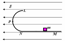 17. 如图所示,在E = 103V/m的水平向左匀强电场中,有一光滑半圆形绝缘轨道竖直放置,轨道与一水平绝缘轨道MN连接,半圆轨道所在竖直平面与电场线平行,其半径R = 40cm,一带正电荷q = 10-4C的小滑块质量为m = 40g,与水平轨道间的动摩因数m = 0.2,取g = 10m/s2,求: