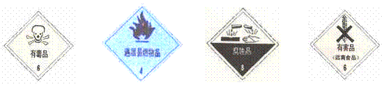A.6剧毒品 B.4遇湿易燃物品 C.8腐蚀品 D.6有害品(远离食品)