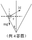 例5 长为L的细线,拴一质量为m的小球,一端固定于O点。让其在水平面内做匀速圆周运动(这种运动通常称为圆锥摆运动),如图所示。当摆线L与竖直方向的夹角是