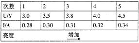 39.按图示电路对额定电压为3.8V的小灯泡进行实验时,测得5组实验数据,并记录在表中,同时记录了小灯泡亮度变化情况。