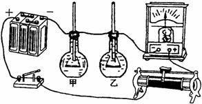 ② 在两玻璃管中的液柱降回原来的高度后,调节滑动变阻器,加大电流,重做上述实验,通电时间与前次相同。在两次实验中,比较甲瓶(或乙瓶)中的煤油哪次上升得高。实验结果:在第二次实验中,瓶中煤油上升得较 。这表明,电流越大,电流产生的热量越多。