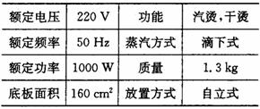 下面是HG2003家用蒸汽电熨斗示意图和铬牌,使用时水箱中的水滴入被加热的底板气室,迅速汽化产生向下的蒸汽。