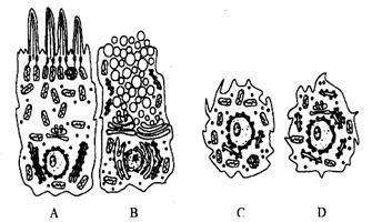 (7)呼吸道上皮细胞不断衰老、脱落,由底部的新细胞更替,图中C、D细胞(位于A、B底部)没有突出的特征,它们均属于 细胞,其中 (填字母)细胞可能演化为纤毛细胞。