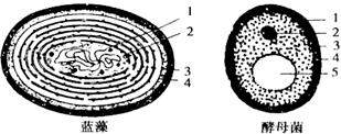 Ⅲ. 右图为蓝藻和酵母菌的细胞结构图。