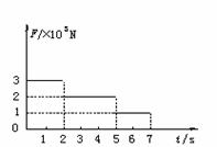 例6.质量为200 kg的物体,置于升降机内的台秤上,从静止开始上升.运动过程中台秤的示数F与时间t的关系如图所示,求升降机在7s钟内上升的高度(取g=10 m/s2)。