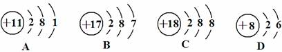 7、下列原子结构示意图所表示的元素中,属于金属元素的是( )