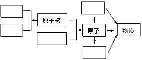 通过探究物质构成的奥秘,我们知道,物质是由原子等粒子构成的。请在右图方框中填写粒子名称,表示各种粒子是怎样构成物质的。