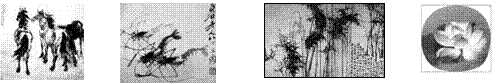 53.(3分)国画又叫中国画,它是用毛笔在宣纸或绢上绘制而成的作品。国画根据表现的题材分为人物、 、花鸟三大画科,这三大画科出现最早的是 。以下作品属于工笔花鸟的是 。