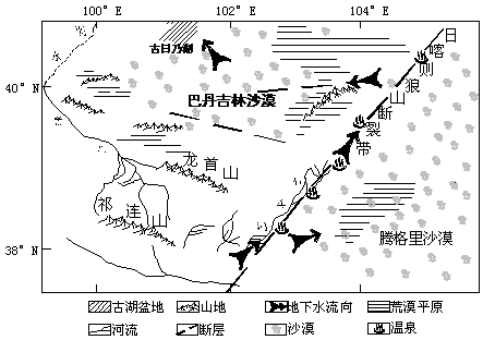 资料二:该地全年盛行西北风、西风,年降水量小于80mm,蒸发量大于3500mm,广泛分布着平均高达200-300m的沙山。沙区总面积中,湖泊群约占10%;面积大于1km2的湖泊有5个,严冬也不结冰。