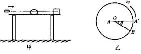 (8分)某实验小组设计了如图甲所示的理论装置验证“碰撞中的动量守恒”.用一飞行的子弹击穿旋转的纸筒后,击中放在桌边缘的木块并停留在其中,忽略子弹击穿纸筒时能量的损失.现测得纸筒转动的角速度为