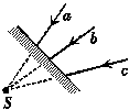 解析:若在S相对镜的对称点S′有一点光源,S′发出的光线经镜面反射后有三条与a、b、c重合,故知a、b、c三条反射光线交于S′.