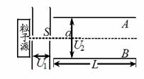 6.如图所示,一个带电粒子,从粒子源飘入(初速度很小,可忽略不计)电压为U1的加速电场,经加速后从小孔S沿平行金属板A、B的中心线射入,A、B板长为L,相距为d,电压为U2。则带电粒子能从A、B板间飞出,应该满足的条件是 ( )