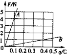 14.(8分)有一个点电荷Q的电场中,Ox坐标轴与它的一条电场线重合,坐标轴上A、B两点的坐标分别为2.0m和5.0m.已知放在A、B两点的试探电荷受到的电场力方向都跟x轴的正方向相同,电场力的大小跟试探电荷所带电荷量大小的关系如图中直线A、B所示,放在A点的电荷带正电,放在B点的电荷带负电.求: