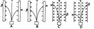 三种射线,从区域正中央进入匀强电场或者匀强磁场,其中,三种粒子的运动轨迹都正确的是
