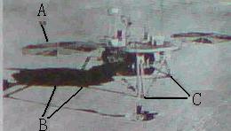 (1分)2008年5月,美国发射的“凤凰”号探测器在火星的北极附近着陆,找到了火星上曾经存在液态水的证据。如图,A是提供电力的太阳能帆板,B是探测器在火星表面留下的影子,C是探测器的“大脚”。以下说法错误的是