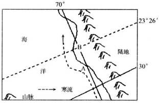 (2)若轮船沿该大洲西海岸并顺图示洋流航行,沿岸自然景观呈现 的地带性变化,B地自然景观主要是 ,其形态狭长的带状分布主要原因是 。