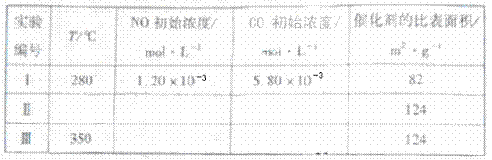 (5)研究表明:在使用等质量催化剂时,增大催化剂比表面积可提高化学反应速率。为了分别验证温度、催化剂比表面积对化学反应速率的影响规律,某同学设计了三组实验,部分实验条件已经填在下面实验设计表中。