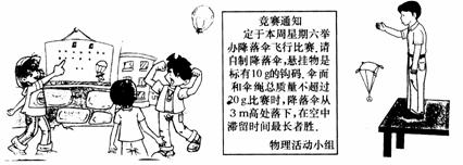 (2)猜想必须通过实验来检验.猜想中,影响降落伞在空中滞留时间的因素很多.为此设计实验时,要用到物理中常用到的研究方法叫 法;