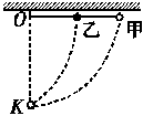 如图所示,甲球由轻绳系住,乙球由橡皮条系住,都从水平位置由静止开始释放,当两球到达悬点正下方K点时,橡皮条长度恰好与绳长相等,则在K点时两球速度大小的关系是( )