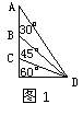 如图1所示,AD、BD、CD都是光滑的直角斜面,斜面固定在水平地面上,现使一小物体分别从A、B、C点由静止开始下滑到D点,所用时间分别为t1、t2、t3,
