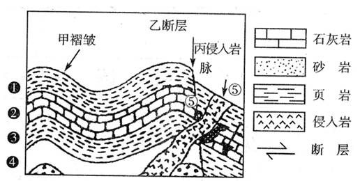 ⑵丙侵入岩脉应为何种岩石?
