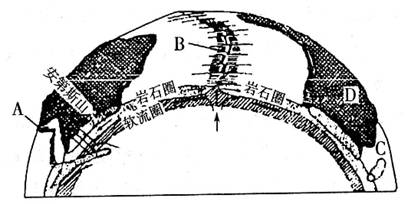 图中剖面线经过非洲、南美的南部,不可能经过亚欧板块,首先排除 D;南美州以西的太平洋底属南极洲板块,图中大西洋中间的海岭西侧为美洲板块,东侧为非洲板块。⑵图中 C 处位于马达加斯加岛附近海域,属印度洋,印度洋在南半球的面积远大于在北半球的面积。