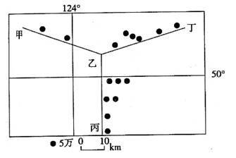 [解析]若该聚落形态是受河流影响的,则在河流的干流附近聚落要分布得多一些,支流少一些。从图中可以看出,甲乙处聚落明显少于乙丙、乙丁处,故最可能为支流的是甲乙。
