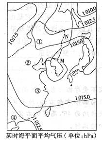 [解析]⑴ 因为相邻两条等压线的数值可能相同,也可能相差一定数值。本题 M 点与其南部(1015.0)、北部(1015.0)的等压线相对比,可知其值可能为 1012.5、1015.0、1017.5。M 点所在等压线与其西部相邻的另一等压线(1017.5)相比较,其数值可能为:1015.0、1017.5、1020.0。以上两条分析的数值交集即为 M 点可能的数值。⑵N 处位于低压中心(气旋)的南侧,气压梯度力应该由南向北(高压指向低压),在北半球右偏,应该是偏南风或西风,但不会出现偏北风。