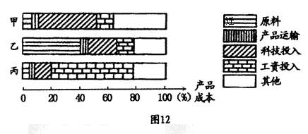 图12为工业部门产品成本比例示意图,读图回答26-27题。
